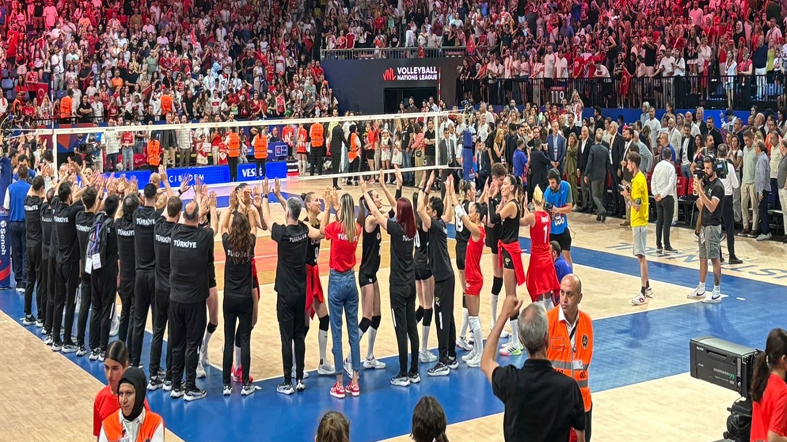 2025 Voleybol Milletler Ligi’nin İstanbul ayağında sahne alan A Milli Kadın Voleybol Takımı, ikinci haftanın üçüncü karşılaşmasında Güney Kore ile karşılaştı. Sinan Erdem Spor Salonu’nda oynanan mücadeleyi 25-11, 25-13 ve 25-17’lik setlerle 3-0 kazanan ay-yıldızlılar, namağlup serisini sürdürerek turnuvadaki yedinci galibiyetine ulaştı. İstanbul’un ev sahipliği yaptığı turnuvanın ikinci haftasında oynanan bu maçta Türkiye, rakibi karşısında […]